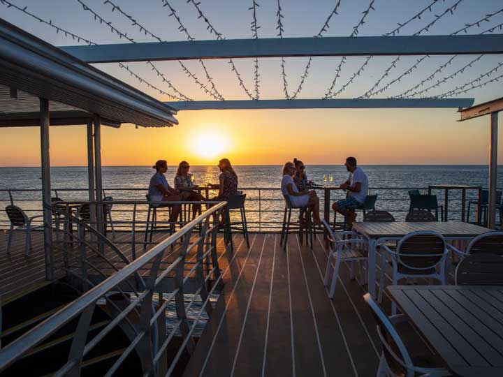 Watch a glorious sunset over the reef with a drink in hand before indulging in a spectacular starlit dinner on the pontoon’s upper deck. Although food is served family style, you can still sit at a table for two if you prefer.