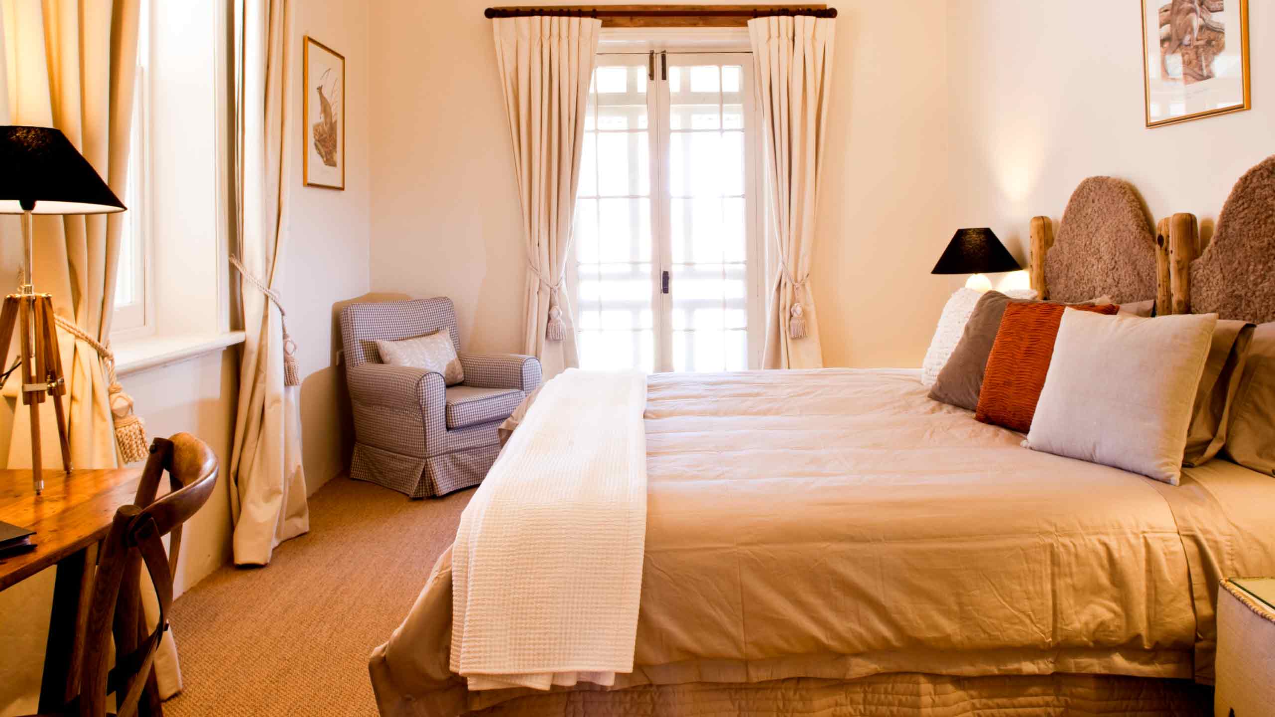 With just five rooms the homestead is an oasis of comfort and style amidst a harsh and rugged landscape, where guests enjoy a taste of classic Australian country hospitality. Each bedroom has its own ensuite bathroom and opens out onto a shaded verandah with individual views of the surrounding ranges. With decor by wildlife artist, Rosie Woodford-Ganf - think bedheads fashioned from recycled fence posts and fleeces, curtains tied back by gumnut tassles, lights perched on explorers' tripod theodolites - the guestrooms retain a sense of history and place.