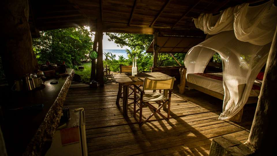 During your stay, you’ll enjoy all-inclusive meals: breakfast, lunch and dinner. If you are a keen fisherman or spearfisherman, the majority of the seafood you will eat will most likely be caught by you, and always on the same day. What is not caught is grown with fruits and vegetables such as banana, grapefruit, papaya and passion fruit picked fresh from the onsite orchard. The eggs are the produce of free roaming chickens and the salad is a mix of flourishing rocket and local vegetables with origins in New Guinea. All non-alcoholic beverages are included. Alcoholic beverages must be organised prior to your arrival.