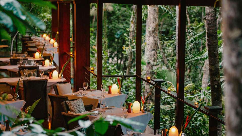 When you’re done walking among towering trees and swimming in rivers and among reefs, indulge in a feast for the senses at Silky Oaks’ Treetops Restaurant. With daily tropical breakfast and dinner matched with se-lected premium wines included in your stay, treat yourself to the region’s best meat, seafood and vegetables augmented with native ingredients. After, retreat to Silky Oaks’ Healing Waters for the ultimate spa experi-ence. Inspired by ancient beliefs that celebrate the Mossman River as a life-giving force, the treatments – fa-cials, massages and more – use the properties of pure botanicals to nurture both body and soul.