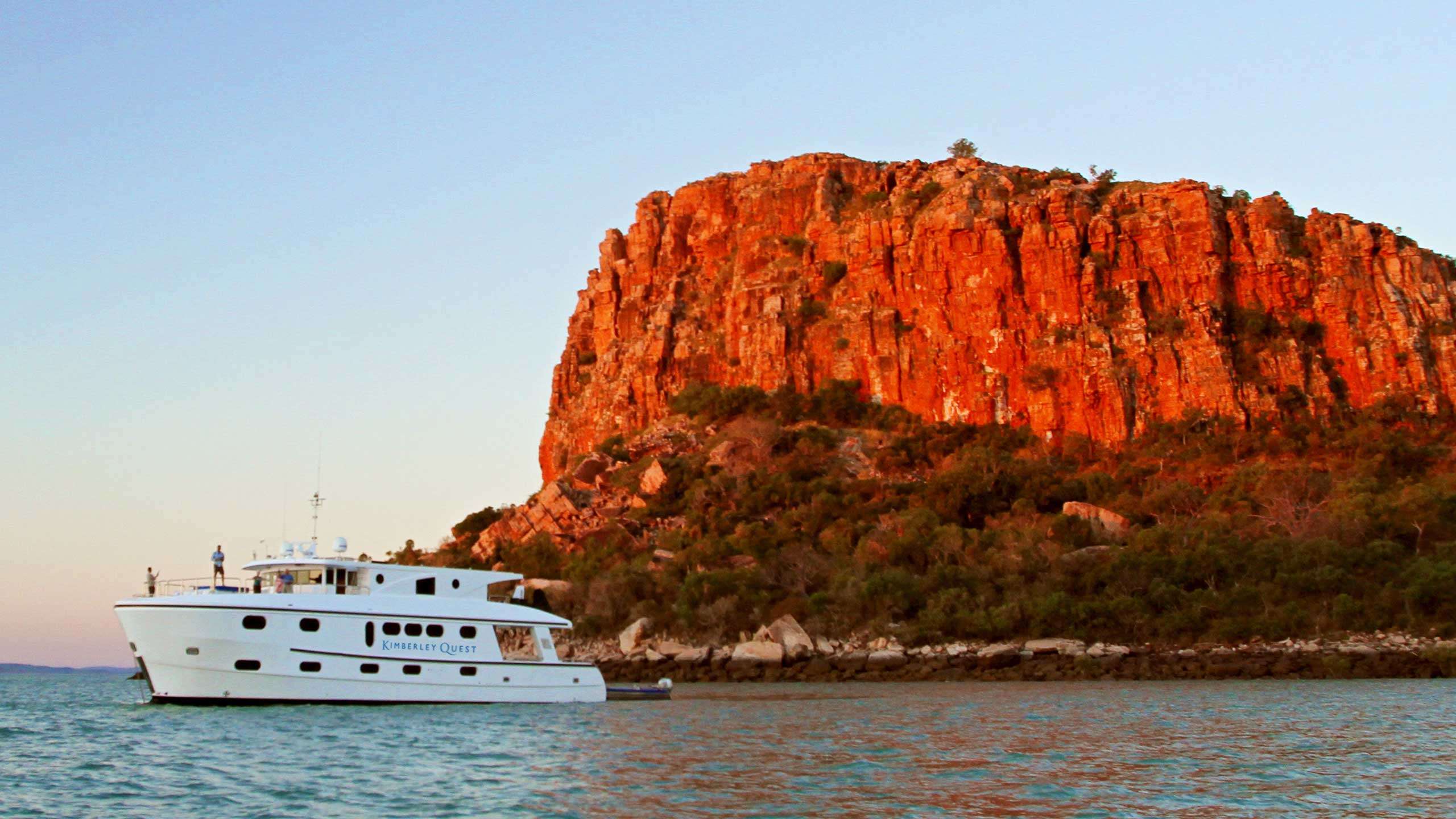 Traverse the entire Kimberley Coast in style and comfort aboard the Kimberley Quest II, on this all-inclusive, 14-day, luxury adventure cruise from Broome to Wyndham. This ultimate wilderness voyage operates just after the Kimberley wet season, which brings new life and spectacular waterfalls from March through to June.