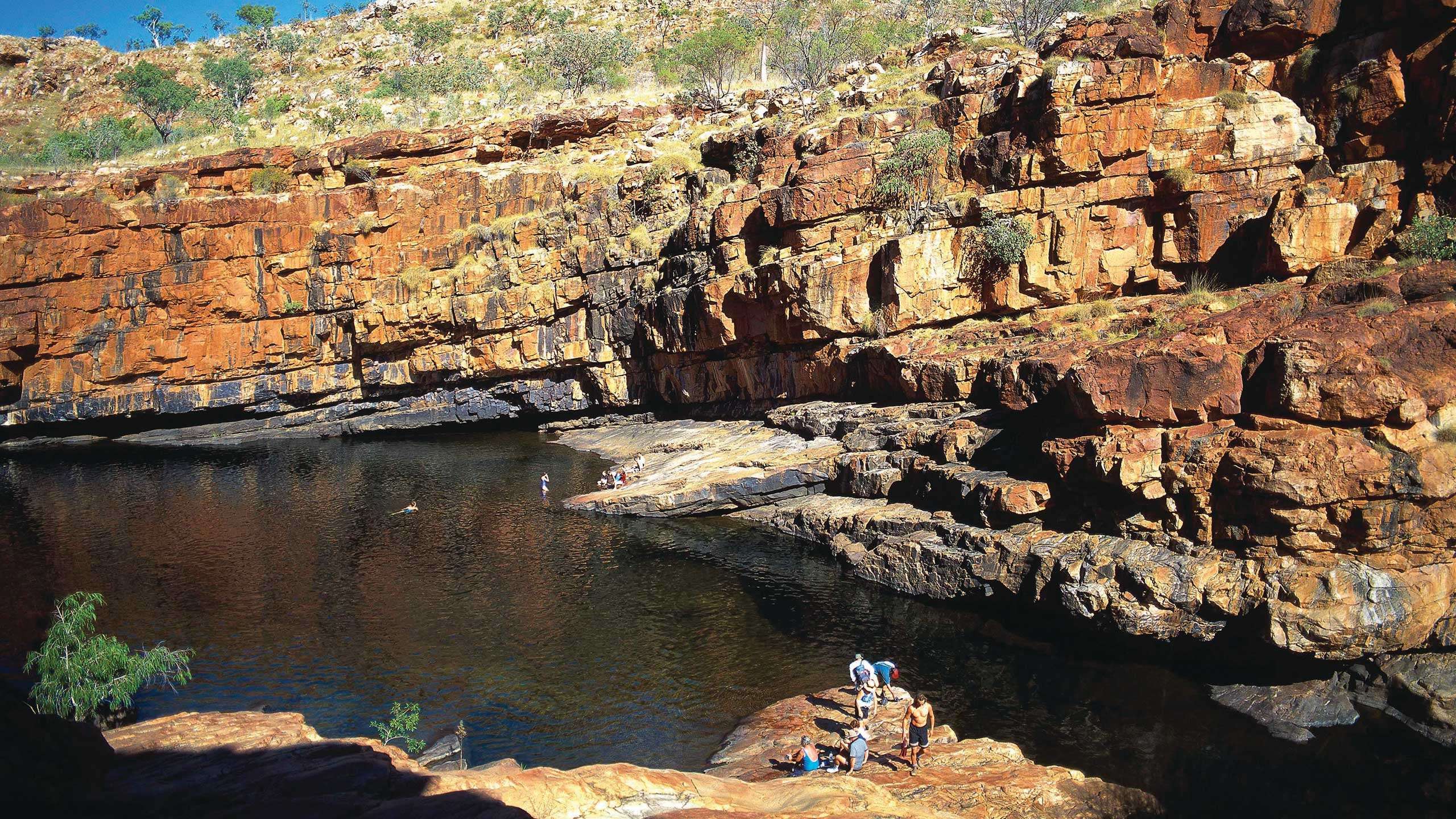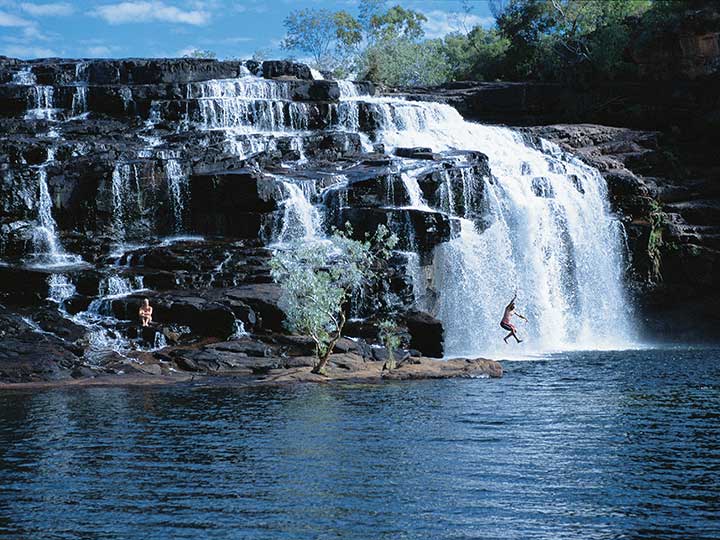 Continue along the iconic Gibb River Road to Galvans Gorge, a popular and pretty swimming spot with a small seasonal waterfall flowing into a horseshoe-shaped pool. Freshen up with a dip among boab trees and water lilies.